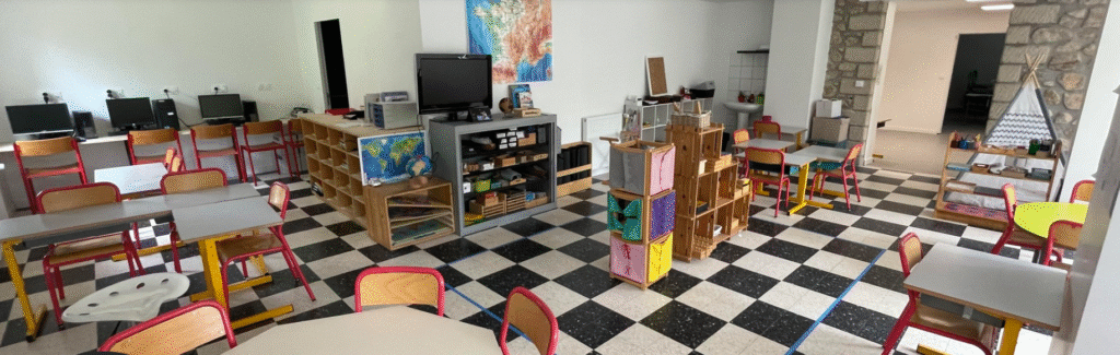 Notre école change du modèle classique. Notre travaillons dans un véritable esprit de famille. Nous fonctionnons en multi niveaux, allant de la maternelle au collège. Les enfants sont mélangés, les petits aidant les grands et vice versa. Nous mettons en place une pédagogie bienveillante et nous privilégions une approche individuelle, offrant à chaque enfant un parcours personnalisé où il peut progresser à son propre rythme Nous favorisons les manipulations, les ateliers et les auto-évaluations. Les enfants ont la possibilité de refaire leurs évaluations autant de fois qu’ils le souhaitent, encourageant ainsi leur développement continu.